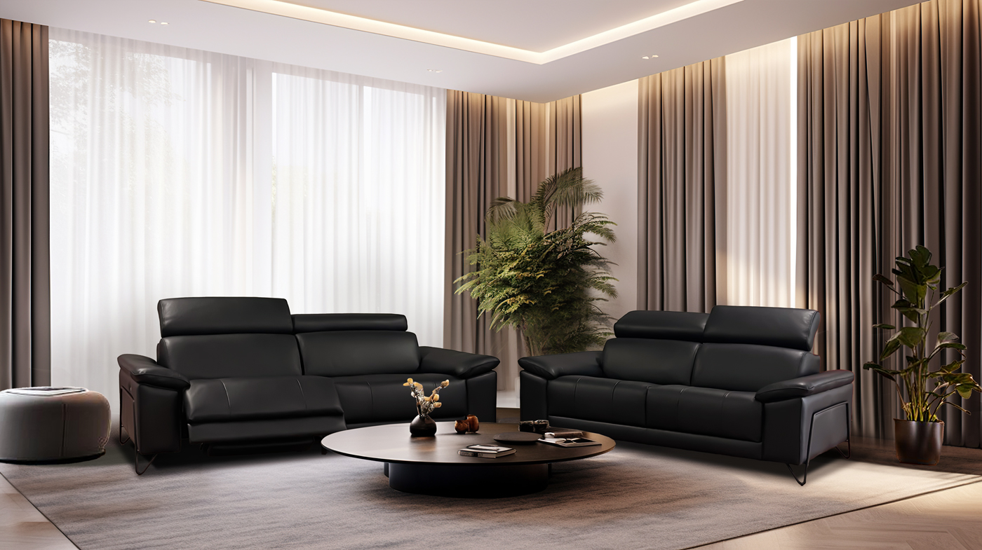 Verkrijgbaar in leder of stof, verschillende afmetingen en opstellingen, met of zonder relaxen