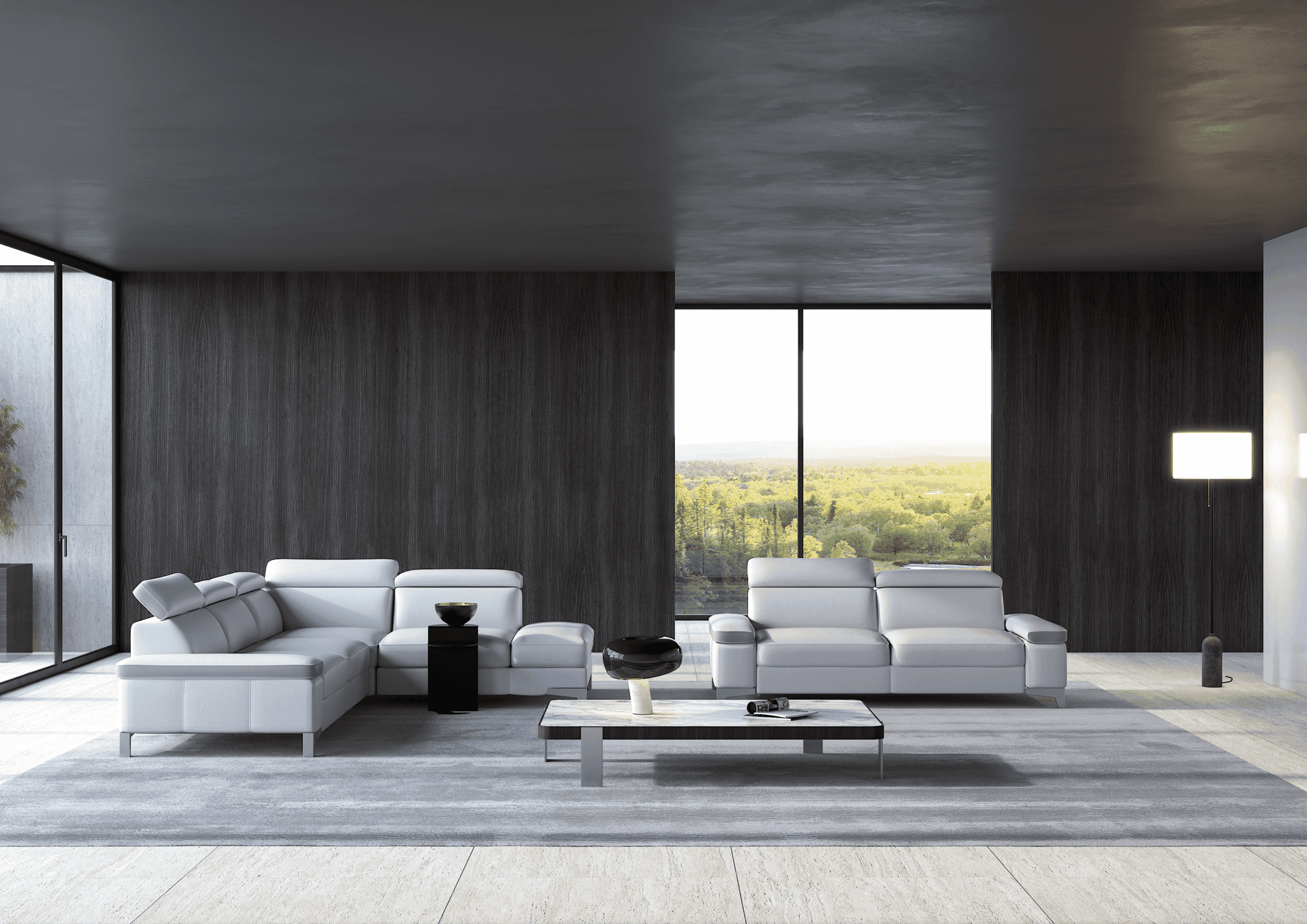 Verkrijgbaar in leder of stof, verschillende afmetingen en opstellingen, met of zonder relaxen