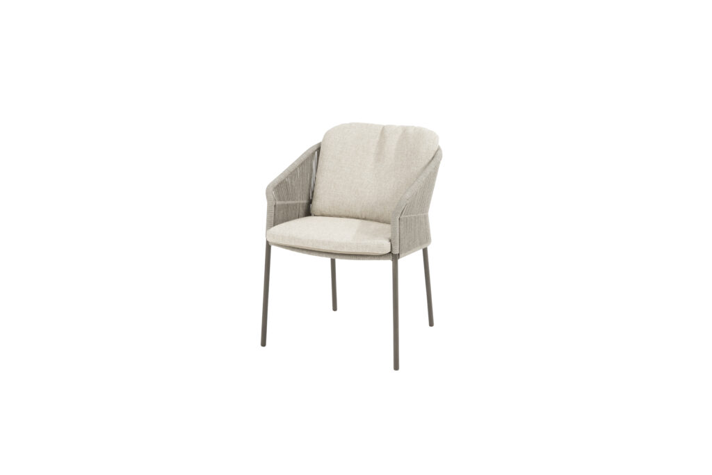 De Flore stoel combineert verfijnd design met luxueus zitcomfort. De elegant gevlochten rope zitting met all weather kussentje biedt een lichte, comfortabele ondersteuning en geeft de stoel een exclusieve uitstraling.